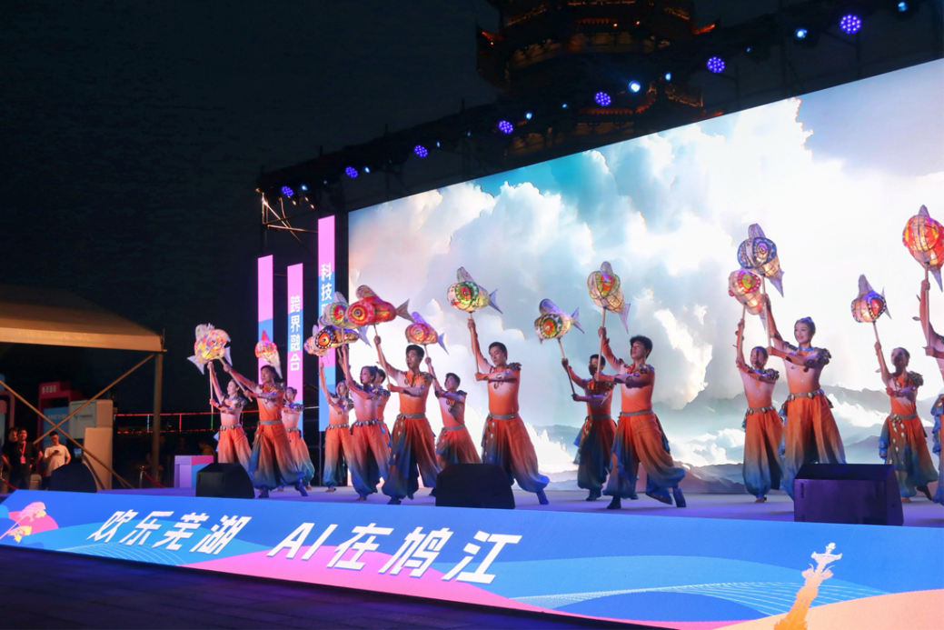 青弋江畔,鸠兹古城。在国家级非遗“无为鱼灯”的璀璨光影中,活泼灵动的虚拟数字人“葱妹”亮相发布现场,搭档专业主持,向社会各界一一揭晓消费季活动具体安排。