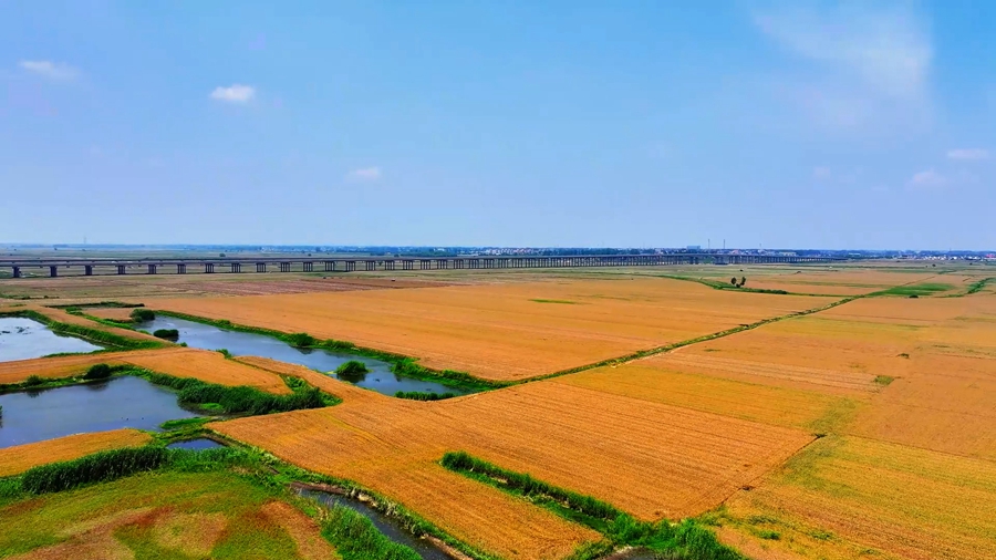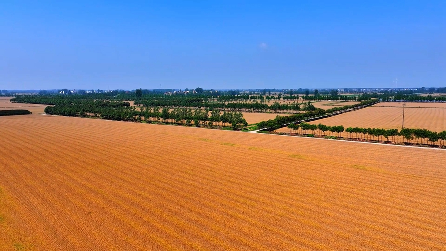 “三夏”时节,位于安徽省阜阳市阜南县的蒙洼地区,广袤的田野正被金黄的色彩所覆盖,微风拂过,麦浪层层翻涌,奏响丰收的前奏。