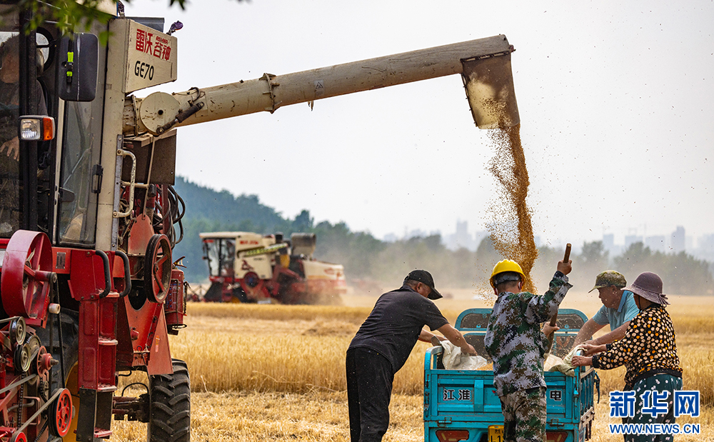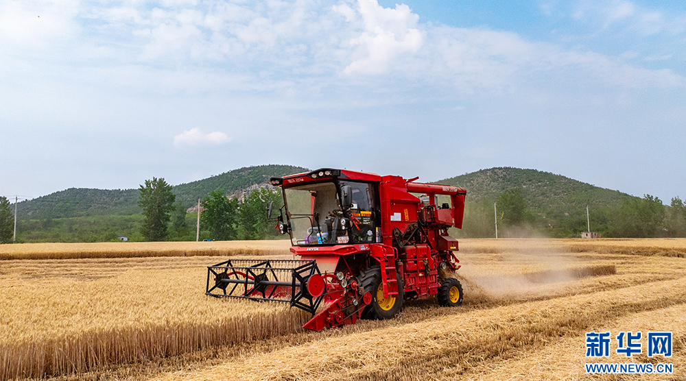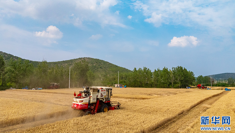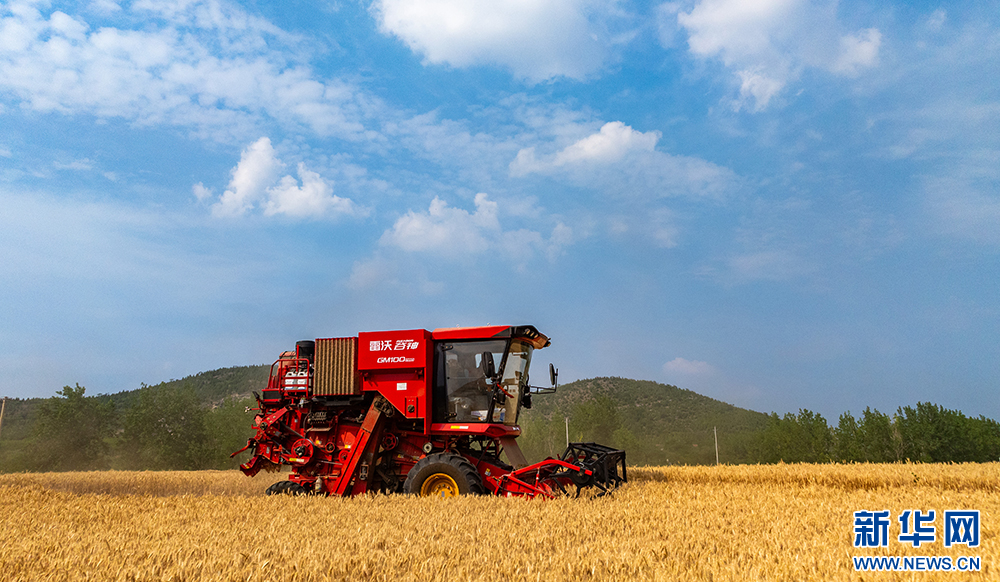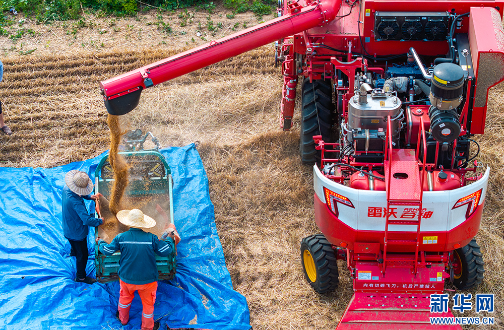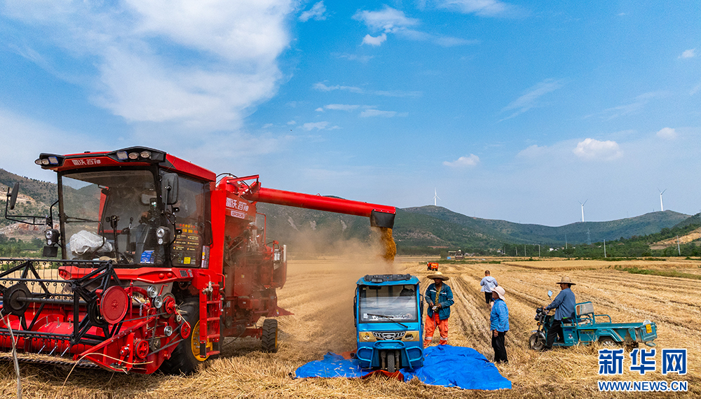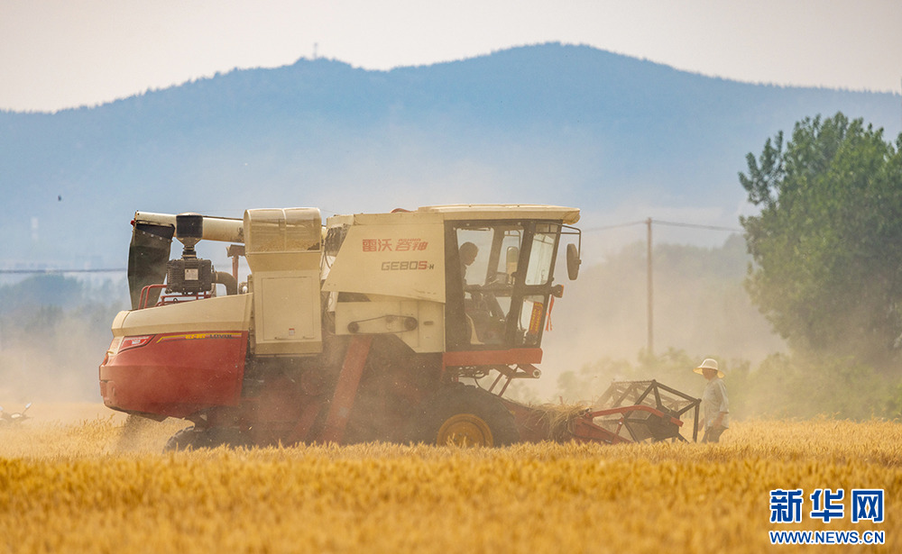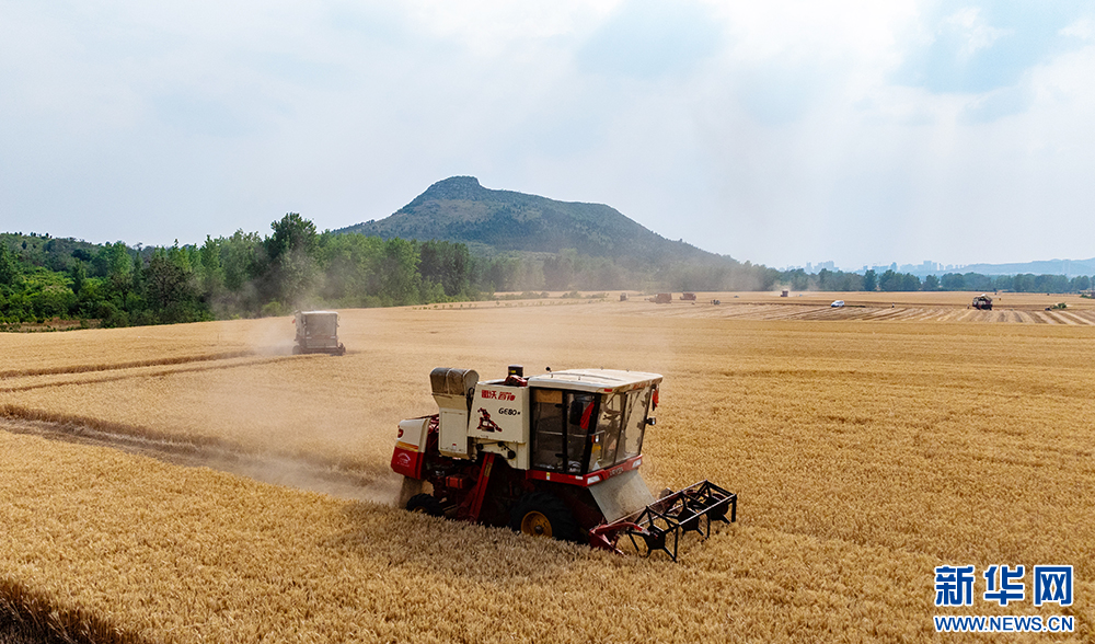 近日,安徽省淮北地区的小麦陆续进入成熟收获期,当地农民抢抓晴好天气开展收割作业。新华网发(王文 朱婷婷 摄)