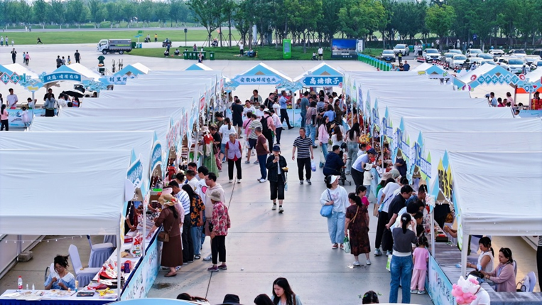 在特色美食品鉴专区,长丰龙虾、吴山贡鹅、下塘烧饼等近30道美食吸引市民游客争相品尝;在非遗展示体验区,非遗传承人与游客互动,让游客沉浸式体验水湖面塑、长丰竹编等非遗技艺;在特色农产品展示及销售专区,不仅有长丰本土的瓜果等农特产品,还可以购买与长丰县结对共建的颍上县粉丝、鸭蛋等特色农产品。