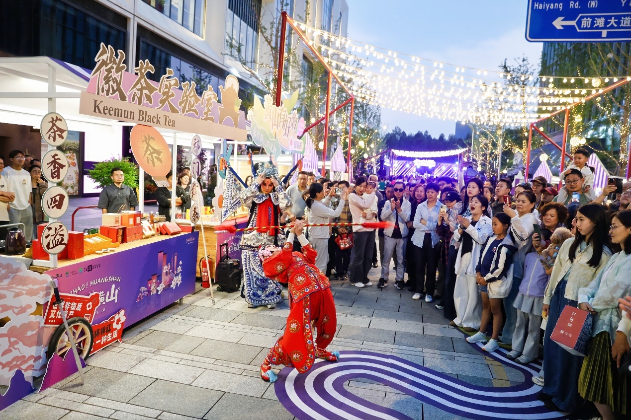 活动现场,徽茶与徽剧同样令人瞩目。来自上海纽约大学的留学生驻足徽茶摊位前,连喝三杯祁门红茶,“中国的茶味道太好了,我要把它带回去,让更多人品尝。”一旁的徽剧表演也热闹非凡,手持花枪,上演全武行,让现场留学生赞叹,“虽然听不懂唱词,但情感的表达跨越了语言。”这场徽派美学风靡全场,将黄山非遗技艺转化为可感知、可参与的文化符号,让中国传统文化在国际传播中焕发新生。
