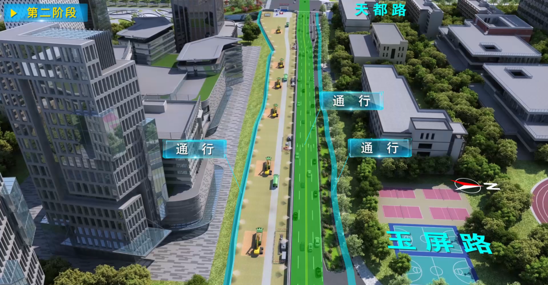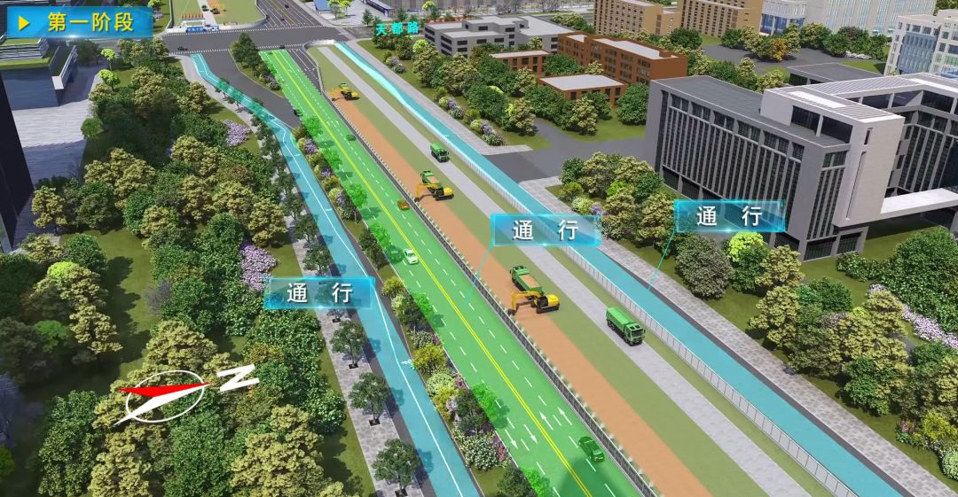 第一阶段(2025年5月6日-7月31日)封闭北侧机动车道,保留南侧双向4车道及慢行系统。