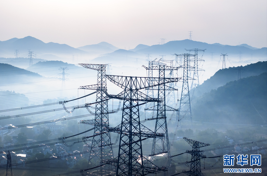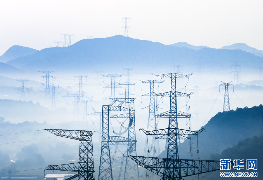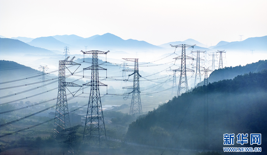 近日,在安徽省芜湖市繁昌区境内,“西电东送”特高压线路与雾霭、山峦相映成景,美不胜收,宛若一幅水墨画卷。新华网发(肖本祥 摄)