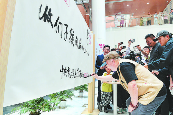 当天在合肥京东方医院这座“流动的美术馆”里,展出了近50幅董浩的作品。“‘80、90后’的孩子们收——董浩叔叔”,现场他还挥毫,在一个精心设计的“大信封”上写下封面,并为共绘梦想长卷的画作题写下卷首:“童心绘梦”。