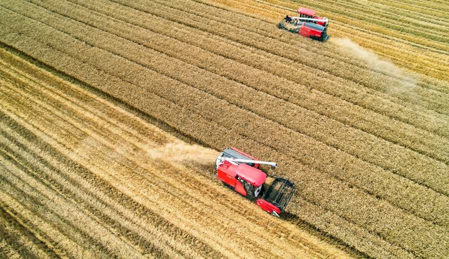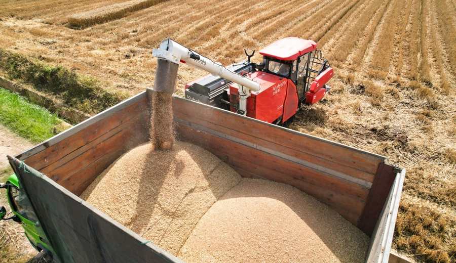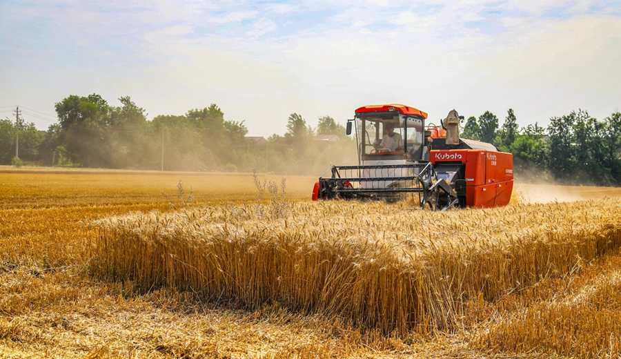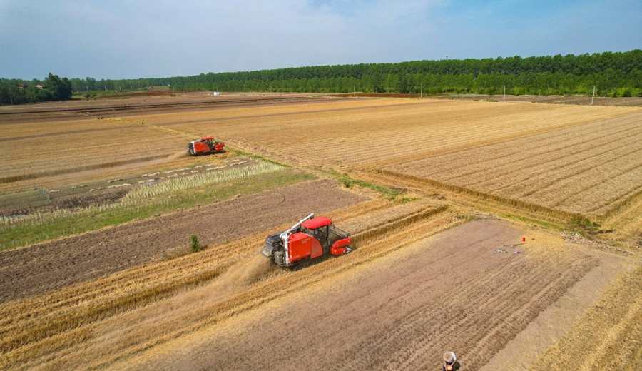 近日,望江县雷池镇迎来了“麦收季”。广袤的田野上,收割机在金黄的麦浪中穿梭,将沉甸甸的麦穗卷入“腹中”,再“吐”出金灿灿的麦粒,一派丰收的景象。(项守兵 沈凡)