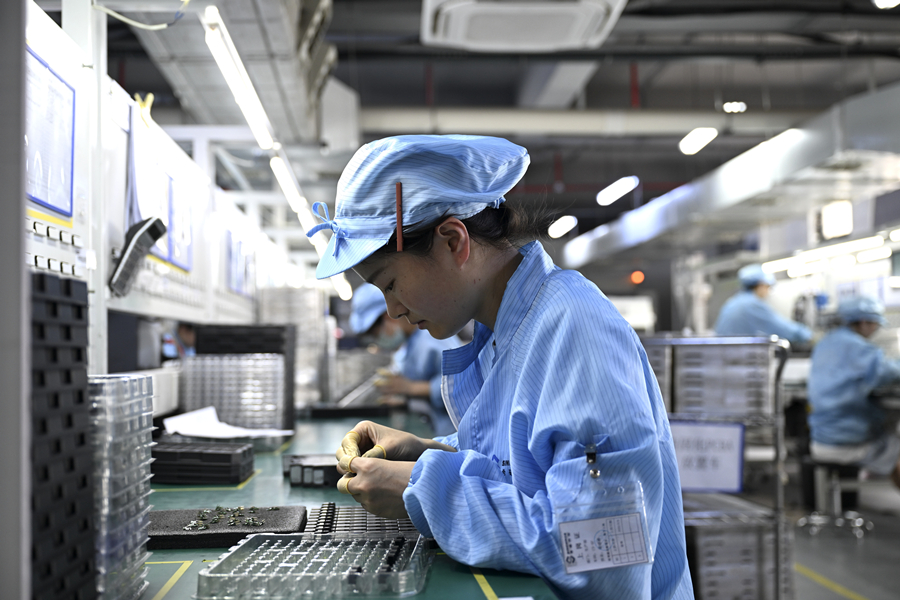 5月21日,安徽希磁科技股份有限公司的工作人员在组装一款传感器。新华社记者 黄博涵 摄