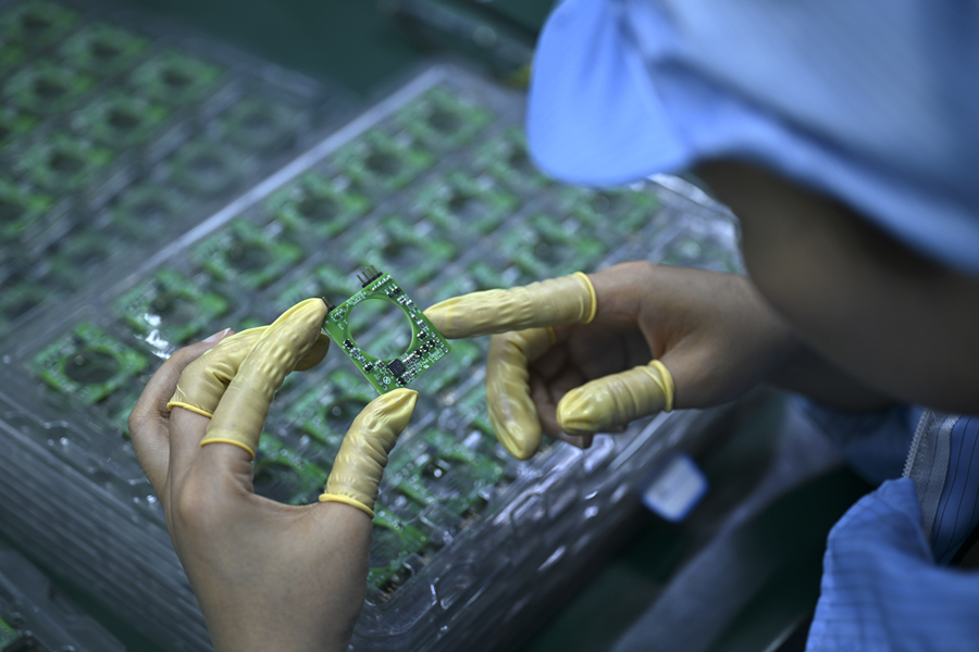 5月21日,安徽希磁科技股份有限公司的工作人员在检查一款传感器。新华社记者 黄博涵 摄