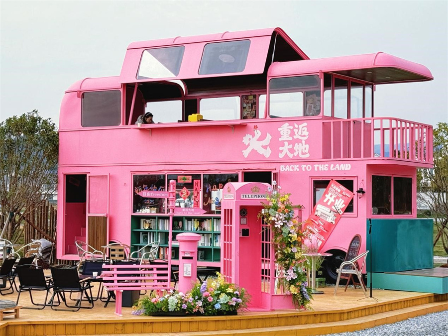 “工作闲暇的时候来这里溜达一圈感觉挺惬意的,这个粉粉的大巴车唤醒了我的少女心。”假期在重返大地青年共建社区游玩的游客江女士说道。
