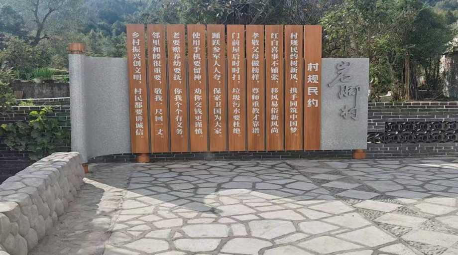 环境整治,意识先行。岩脚村以乡风文明和党建引领信用村建设工作为切入点,激励岩脚村村民参与“美丽庭院”“星级文明户”创建,形成创“星”、追“星”、争“星”的浓厚氛围。开展积分兑换4次,评选“美丽庭院”21户,带动人居环境的整体改善。持续推进人居环境整治,按照景区村庄标准推动片区“旧貌换新颜”,打造“五美”家园,累计拆除无功能建筑、旱厕31处,片区改厕完成率达100%,清扫街道、清理沟渠5.1公里,清扫杂草杂木13吨,新建江边漫步空间12处,新增特色文化墙绘21处。