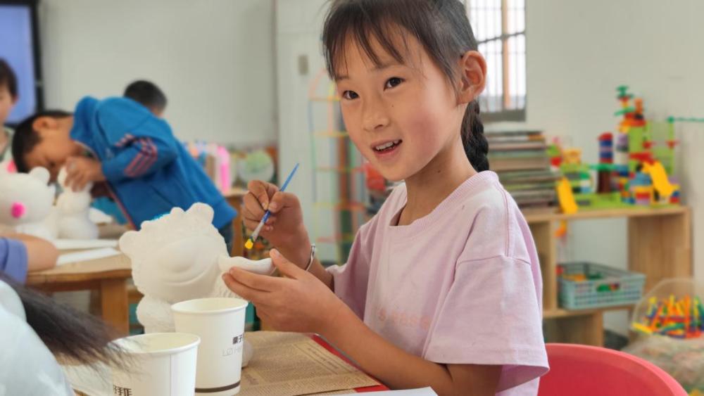 活动伊始,一场别开生面的文化之旅拉开了序幕,安徽中国徽州文化博物馆“行走的徽文化”志愿服务队为孩子们带来了一堂妙趣横生的“徽文化课堂”。在轻松愉快的氛围中,志愿者把古老徽州的建筑智慧、商贾传奇、礼仪风尚化作一个个鲜活的故事,在孩子们心中播下了文化传承的种子。互动问答环节,孩子们兴致盎然,踊跃举手。紧随其后的“石膏娃娃涂鸦”环节,瞬间点燃了全场的创作热情,孩子们手握画笔,大胆挥洒,教室里洋溢着欢声笑语。