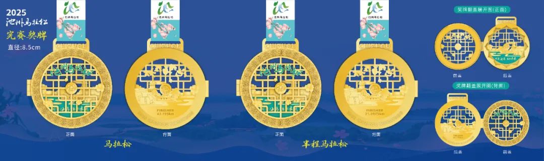 完赛奖牌匠心独运,为了给参赛选手留下美好的池马记忆,赛事特别推出“三周年荣誉体系”。赛事组委会创新采用三年奖牌可拼装设计,2023年、2024年和2025年的三枚奖牌可组合成一件池马特色艺术品,极具收藏价值。