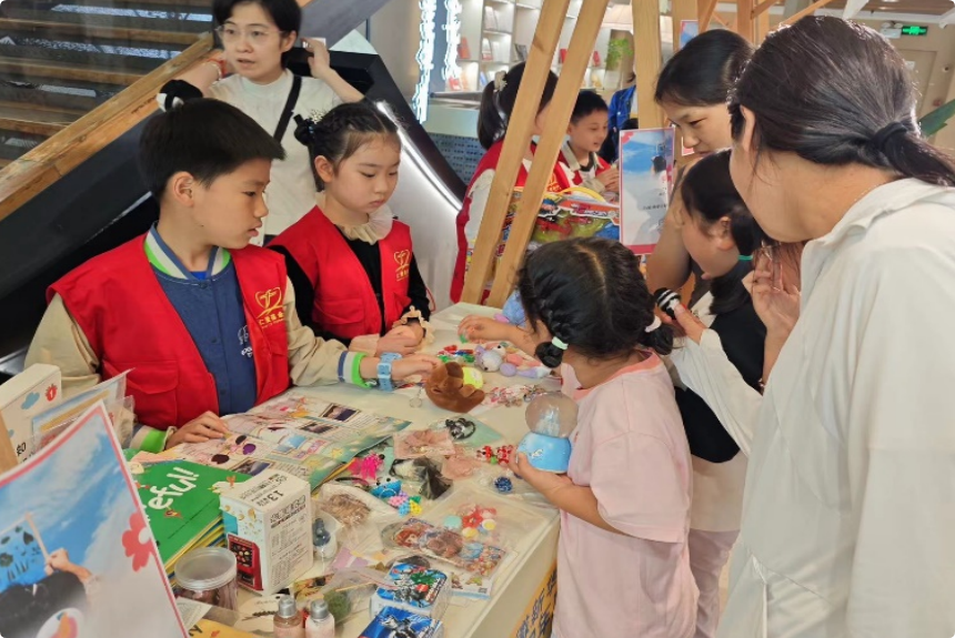 值得一提的是,合肥三孝口店在一楼大厅举办了主题为“童心献爱,益起成长”的爱心义卖活动。活动吸引了众多小朋友参与,他们用稚嫩的声音讲述着每一件物品背后的故事,而义卖所得也将全部捐赠给其他需要帮助的儿童。孩子们在实践中不仅锻炼了沟通表达能力,更深刻体会到了奉献的意义。