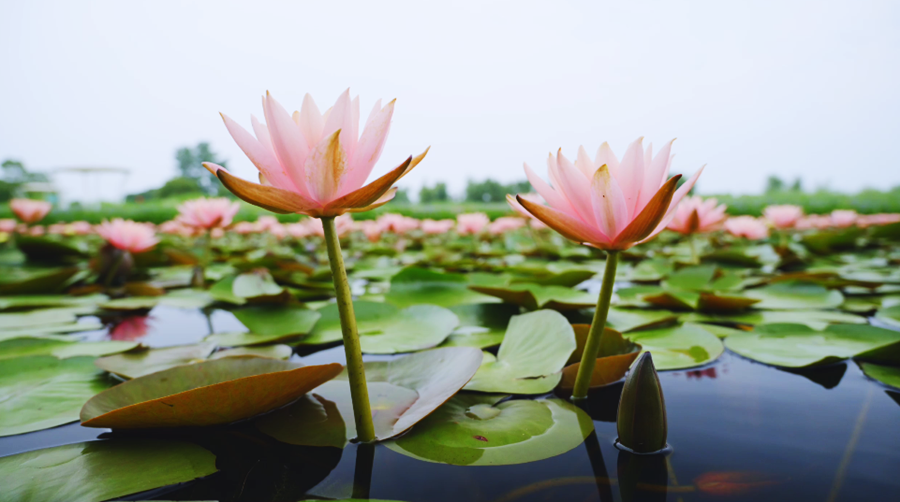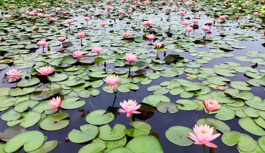 近日,在安徽省芜湖市湾沚区陶辛镇,成片的睡莲花开、新荷初绽,静谧唯美,为夏日增添一抹亮丽的色彩,令人赏心悦目。(胡健)