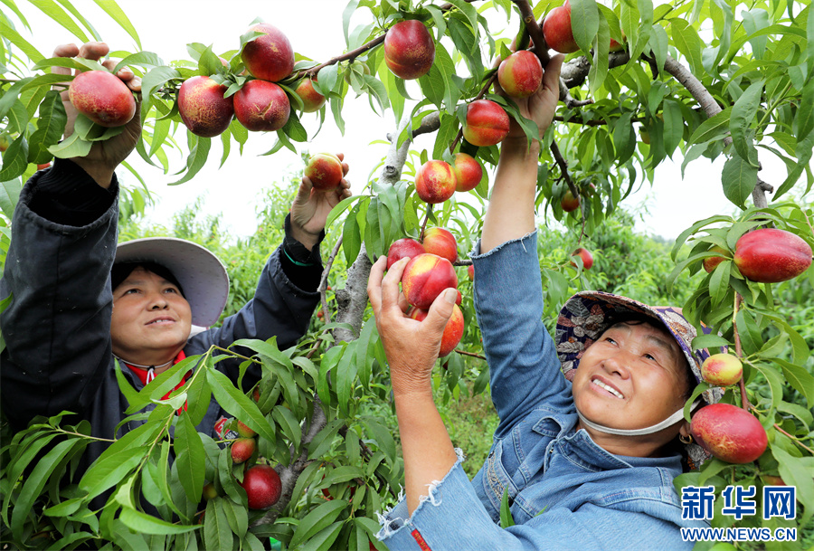 近年来,安徽省淮北市烈山区烈山镇青谷社区采取“合作社+基地+农户”生产模式,引进水果新品种,实施科学管理,绿色无公害生产,打造“一村一品”特色种植。并通过农超对接、电商销售,果品市场供销两旺,带动村民增收致富。新华网发(李鑫 摄)