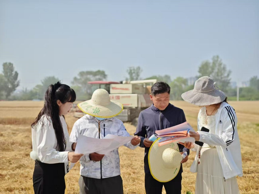 农办室技术人员深入田间地头,开展农技包保服务,指导农户科学应对天气变化,做好小麦抢收、晾晒及仓储管理。针对病虫害等问题,现场提出解决方案,帮助农户减少损失。此外,工作人员还对接合作社和种粮大户,协调农机调度。有农户反映,部分地块小麦存在倒伏问题,收割机作业效率较低。农技人员立即协调2台加装扶倒器的新型收割机支援,并指导采取“逆向收割”方式,将损失率控制在5%以内。确保收割、播种无缝衔接,为秋粮生产打下坚实基础。