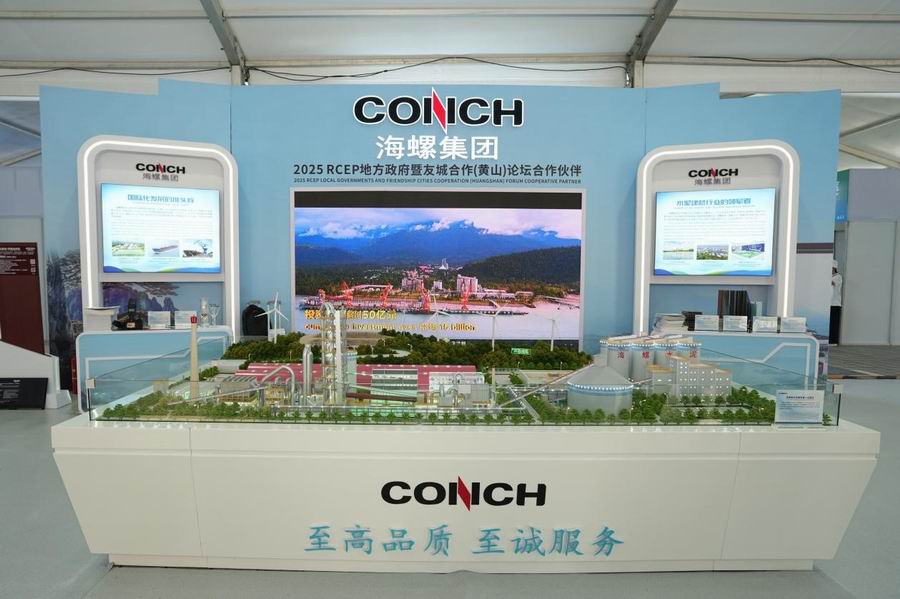 走进2025 RCEP地方政府暨友城合作(黄山)论坛海螺展区,一座绿色低碳智慧工业园区沙盘成为焦点。智能工厂、无人驾驶、碳捕集利用等前沿技术应用场景跃然眼前,真实展现了海螺如何赋能园区实现劳动生产率提升20%、碳排放强度下降3.8%的“双赢”目标。展台上,海螺建筑光伏明星产品“宣瓦”“徽墙”以及“无醛无味、即装即住”的生态家居解决方案,为建筑节能与健康人居提供了全新选择,彰显了集团在建筑节能与环保家居领域的创新突破。