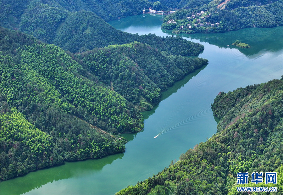 6月6日,在安徽省黄山市徽州区洽舍乡拍摄的丰乐河生态美景。
