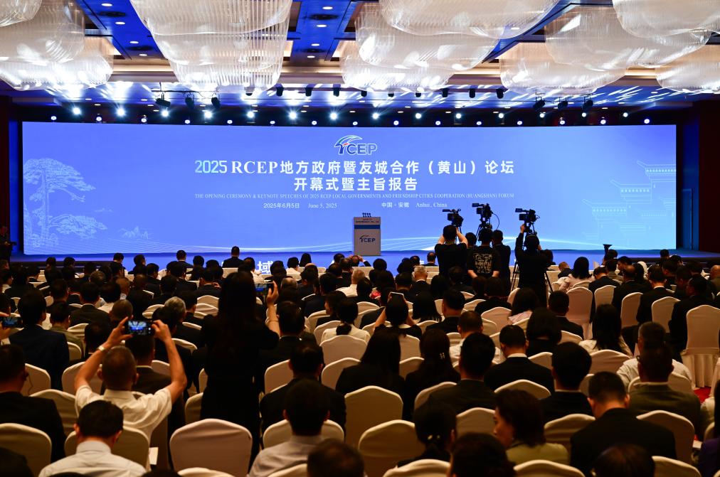 6月5日拍摄的2025RCEP地方政府暨友城合作(黄山)论坛开幕式暨主旨报告现场。新华社记者 周牧 摄