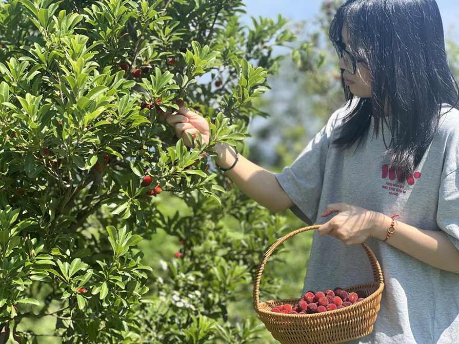 在这里,不仅能采摘杨梅,还可发现猕猴桃、蓝莓、黄桃等果树点缀山间。通过搭配不同成熟期的果树,山庄打造出“四季采摘链”,让游客全年都能感受乡土文化的魅力。