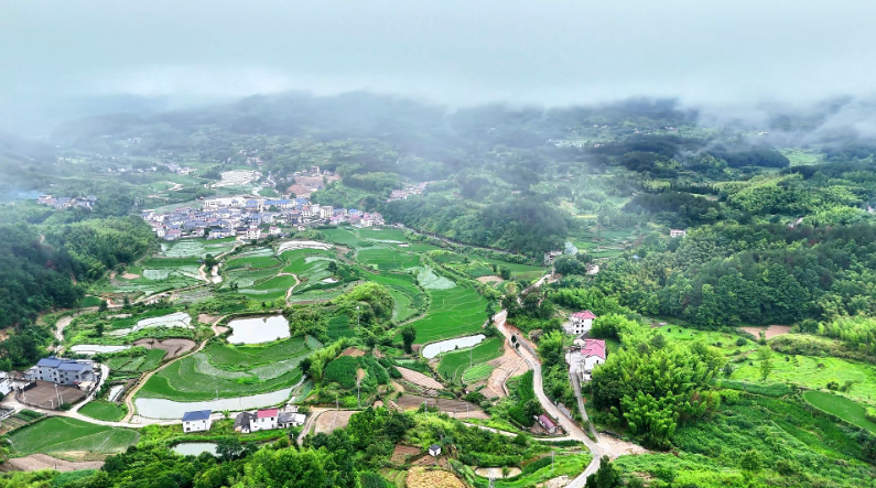 夏日时节,雨后的安徽省旌德县凫山村草木葱茏。