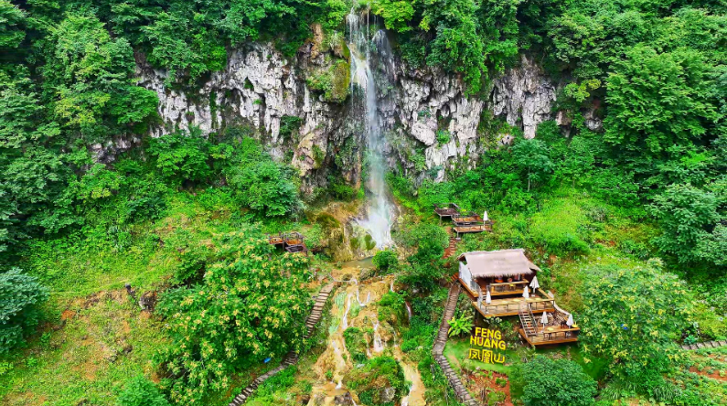 夏雨初霁,安徽省铜陵市凤凰山风景区内的滴水崖飞瀑奔涌,如银练垂空。极目远望,雪瀑与苍崖翠嶂相映,勾勒出“白练垂空映翠微”的诗意画卷,尽显山水之灵秀。