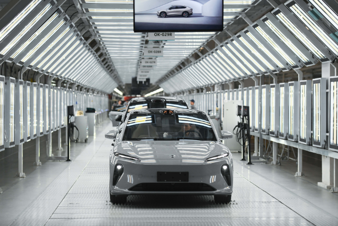 这是在安徽省合肥市新桥智能电动汽车产业园蔚来第二工厂拍摄的新能源汽车生产线(2024年5月9日摄)。(新华社)