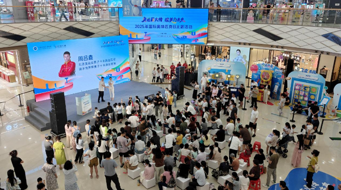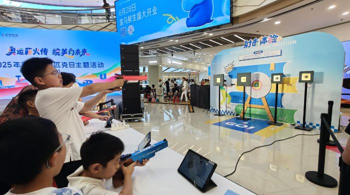 跳水世界冠军周吕鑫在活动现场与青少年们亲切互动,分享自己的运动经历与感悟。他将奥林匹克精神与中华体育精神融入生动的故事之中,传递给每一位在场的市民。在周吕鑫的鼓舞下,市民们热情高涨,纷纷踊跃参与现场的体验活动,用实际行动践行奥林匹克精神,让体育的激情与活力在活动现场持续燃烧。