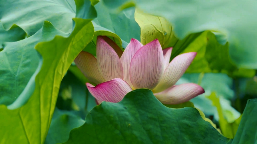 盛夏时节,安徽省颍上县八里河的荷花迎来了盛放期。风过水面,荷叶田田,芙蓉朵朵,相映成趣。