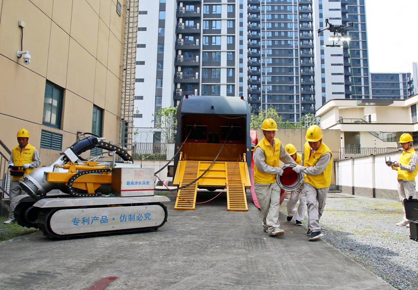 由于站内出现大量积水,并且短时间内难以消退,运维人员迅速打开变电站场地内的积水井盖,启动龙吸水排水车、启动排水方舱等设备。龙吸水排水车以每小时1000立方米的排水量进行工作,1小时左右,贵阳路变电站内积水全部排出,强降雨渐止。在此过程中,周边广大用户保持平稳供电。