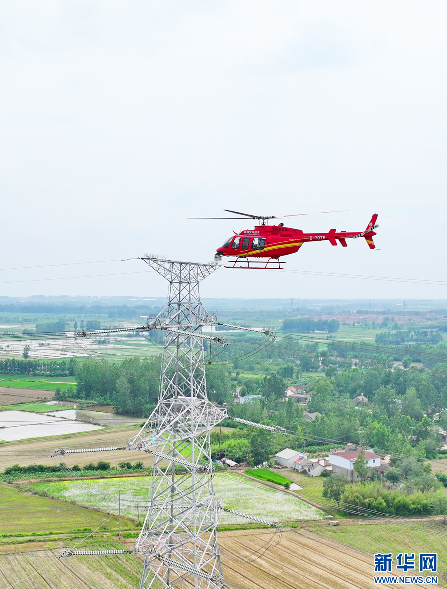 为确保“皖电东送”至长三角地区的特高压电力大动脉安全稳定运行和“迎峰度夏”期间城乡工农业生产生活可靠用电,安徽省滁州市供电公司联合国网空间技术有限公司通过直升机对超高压输电线路进行精细化巡检,弥补地面巡线视觉盲点,及时消缺维护,保障华东电网夏季高峰供电安全。新华网发(宋卫星 摄)
