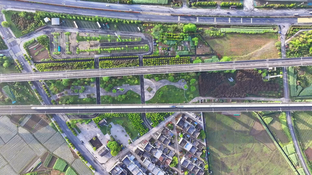 一列动车组列车穿过西溪南古村落。(陈相 摄)