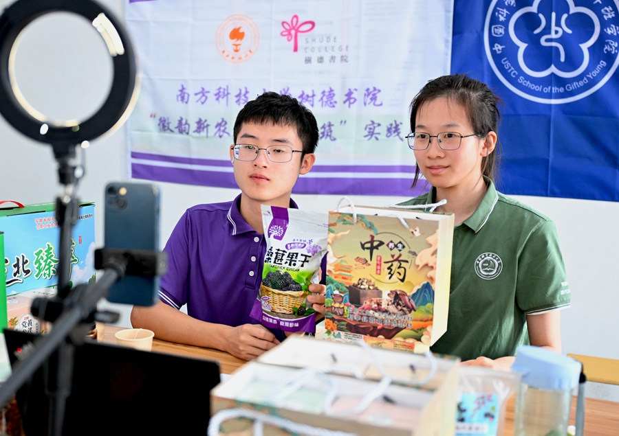 连日来,在安徽省亳州市利辛县江集镇郑大楼村,由南方科技大学树德书院和中国科技大学少年班学院22名学子组成的社会实践团队,开展了丰富多彩的暑期实践活动。活动期间,大学生们通过开展助农直播、直播带货教学和村民手机摄影培训等支教支农及社会调研活动,用实际行动践行青春梦想,赋能乡村振兴。(刘勤利)