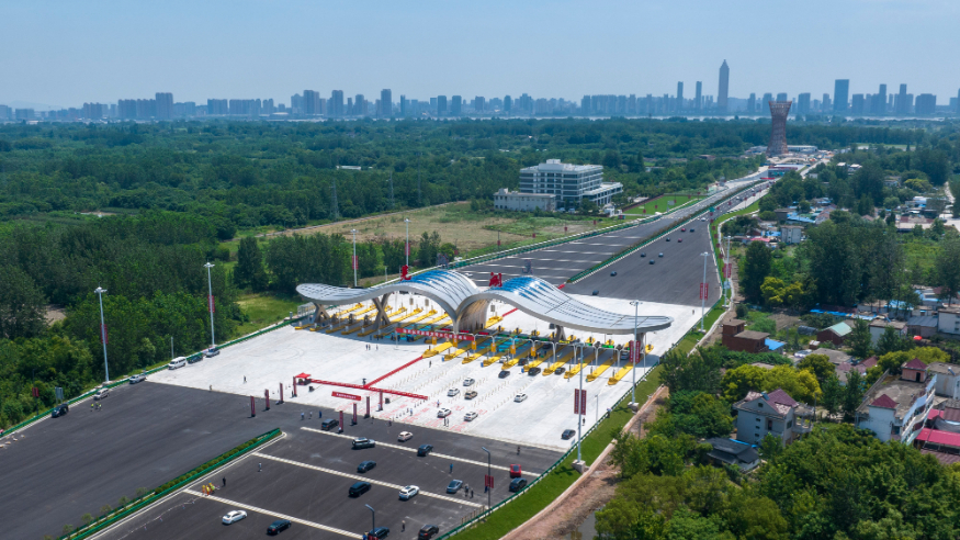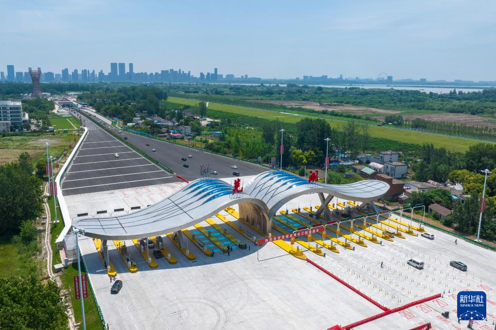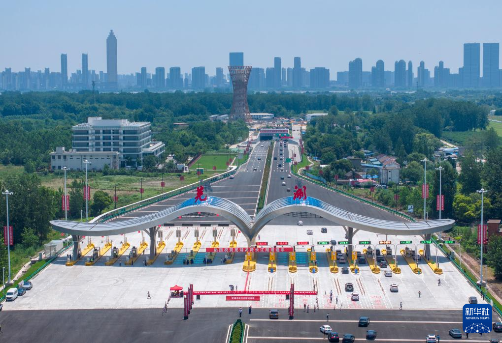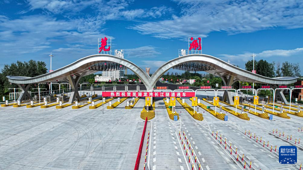 7月1日,车辆通过芜湖龙湾长江隧道收费站(无人机照片)。新华社发(肖本祥 摄)