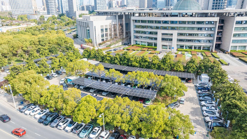 在合肥市政务服务中心,有一座“与众不同”的新能源汽车充电站,它设有100个新能源汽车充电桩和多个主流品牌换电站,停车场顶棚安装了容量为2.28兆瓦的分布式光伏电站,配套建设容量为300千瓦/645千瓦时的储能电站,形成了一个颇具规模的“微电网”。