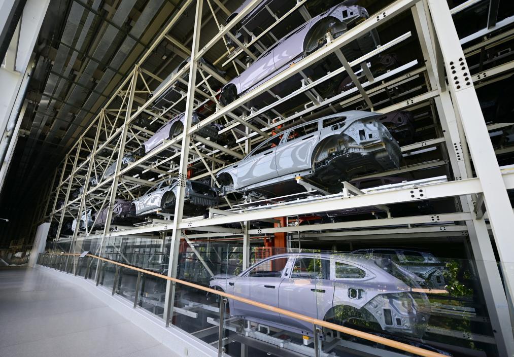这是蔚来先进制造新桥二工厂内的“魔方”车辆存取平台。新华社记者 周牧 摄