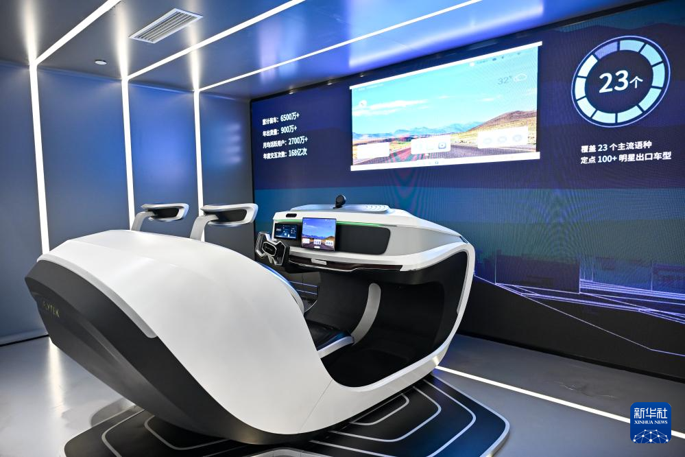 这是在科大讯飞人工智能体验馆拍摄的“讯飞星火”车机系统演示效果(7月2日摄)。