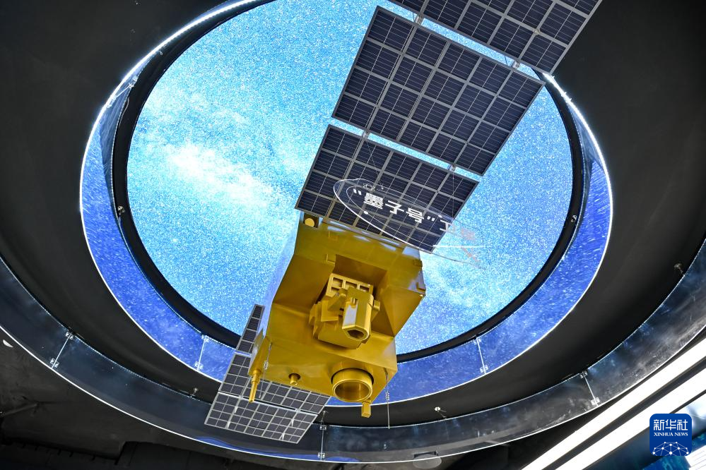 这是在中电信量子信息科技集团有限公司的科技体验馆内拍摄的“墨子号”量子卫星模型(7月1日摄)。