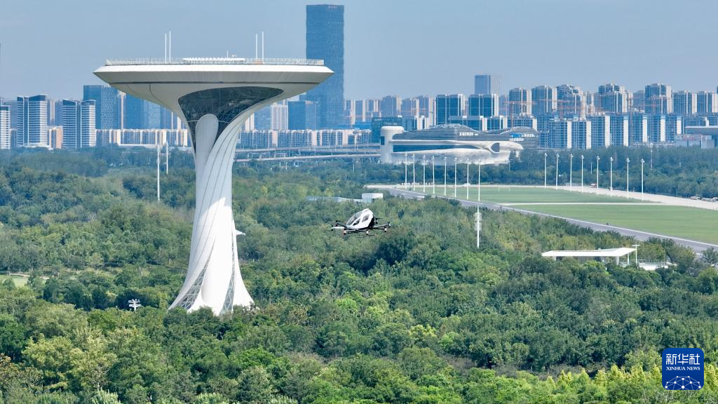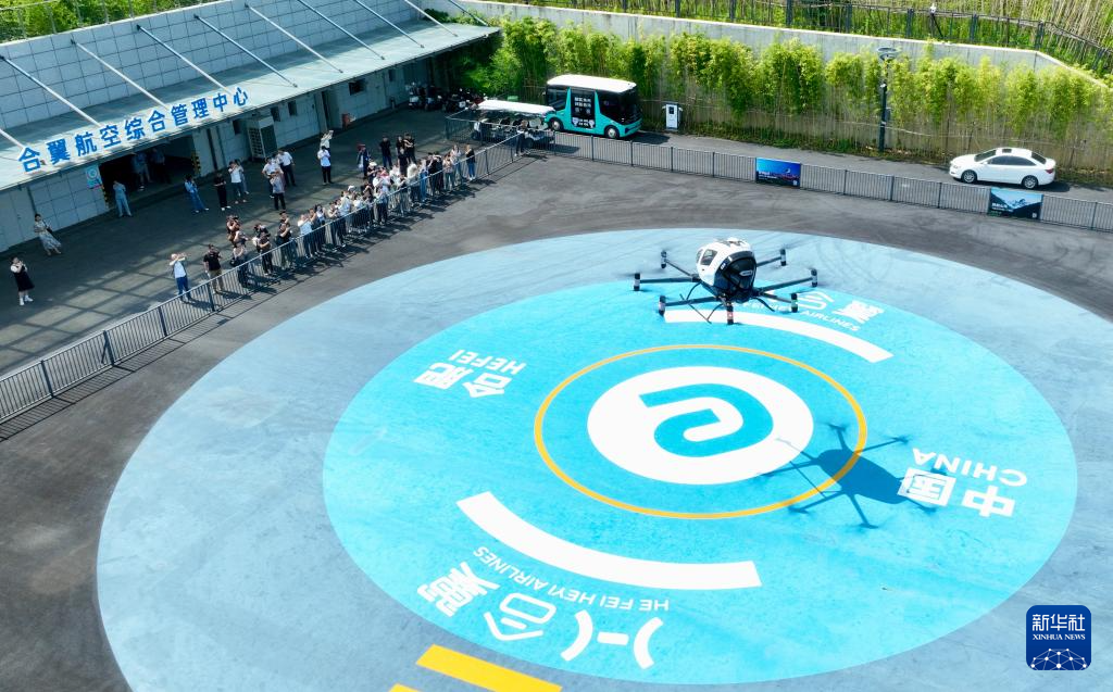 7月2日,一架电动垂直起降飞行器(eVTOL)在合肥骆岗公园演示飞行(无人机照片)。