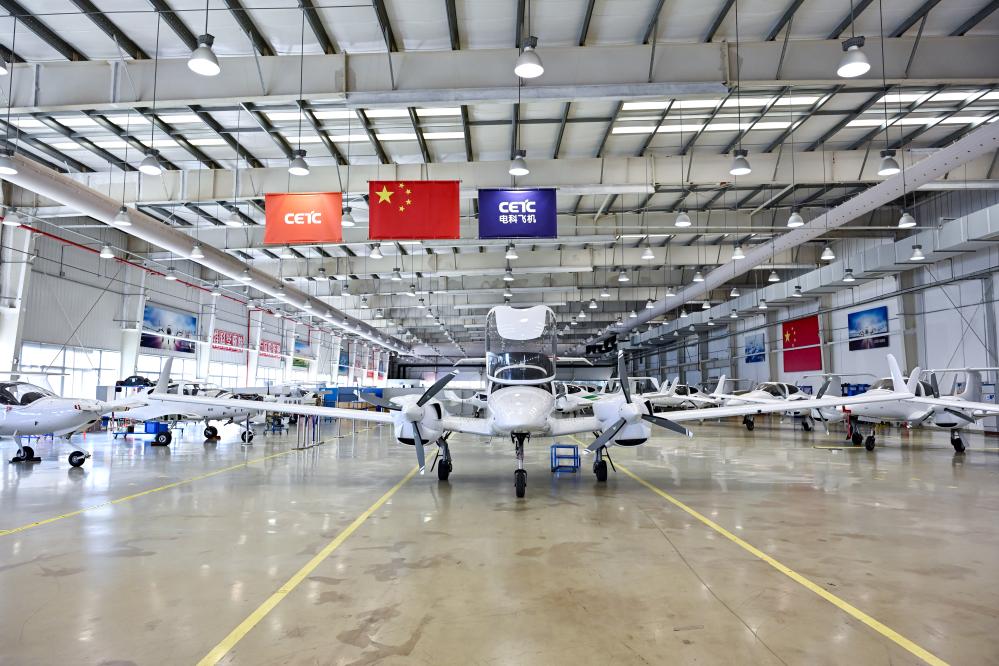 这是7月3日在中电科芜湖钻石飞机制造有限公司内拍摄的通航飞机。新华社记者 张铖 摄