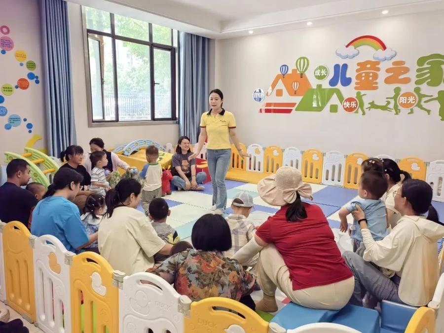 志愿者带领儿童互动,现场氛围温馨有爱。