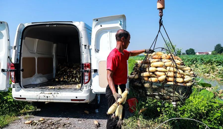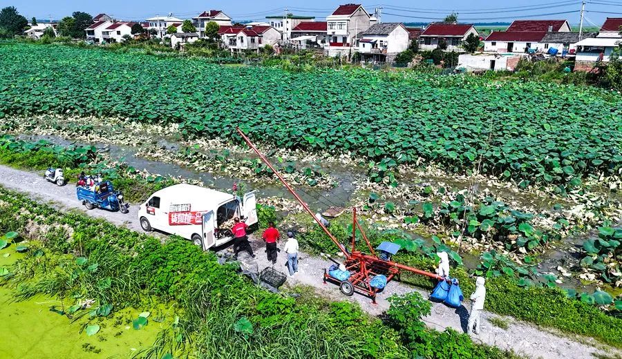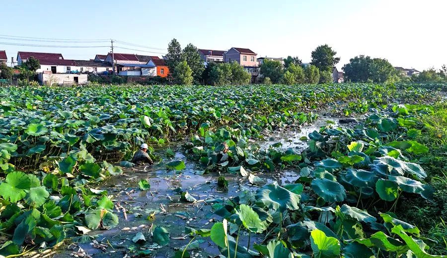 连日来,望江县雷池镇青草湖社区的千亩藕塘里一派繁忙景象。藕农们抢抓农时,顶着酷暑采收莲藕,确保市场供应。