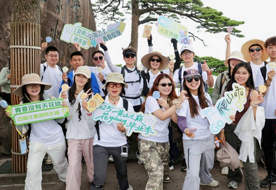 7月8日至9日,黄山迎来了一场专属于毕业生的青春盛宴——“黄山之巅·花YOUNG毕业季”。活动自6月25日招募启动以来,迅速引发全网关注,吸引了来自全国各地的超1000名大学生、毕业生关注。经过筛选,12位毕业生与旅游达人共同组成“花YOUNG体验官”,于7月8日正式开启了这场青春之旅,在黄山之巅的云海奇松间完成了一场别开生面的高山毕业礼。