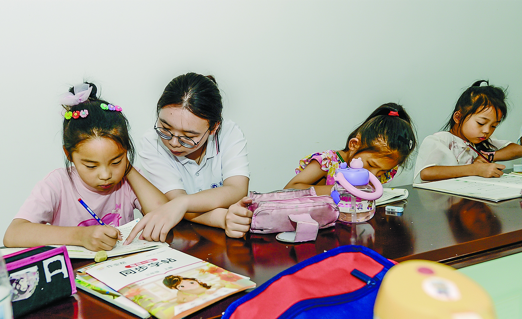 7月4日上午,巢湖学院外国语学院的志愿者们抵达大桥社区“暑有所托,学有所获”暑期公益课堂。在这里,志愿者们化身知识引路人,耐心辅导辖区孩子完成暑期作业,用智慧与爱心点亮孩子们的暑假时光。
