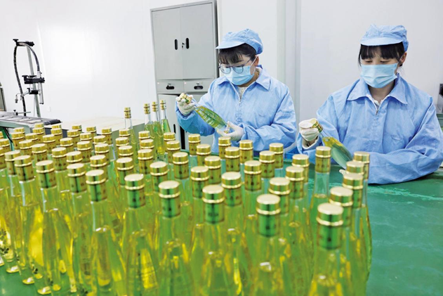 在铜陵凤丹种植科技开发有限责任公司生产车间里,工人正生产牡丹籽油。(资料图 梅建广 摄)