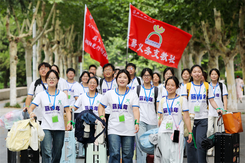 7月12日,安徽省淮北师范大学薪火义务支教社的24名大学生志愿者出征,分别奔赴广东省阳山县鱼水片小学和安徽省砀山县毛雷庄小学,开展为期14天的暑期公益支教活动,为当地学生开设舞蹈、英语、科学、音乐、美工、体育等丰富多彩的兴趣课程,丰富乡村孩子们的暑期生活。