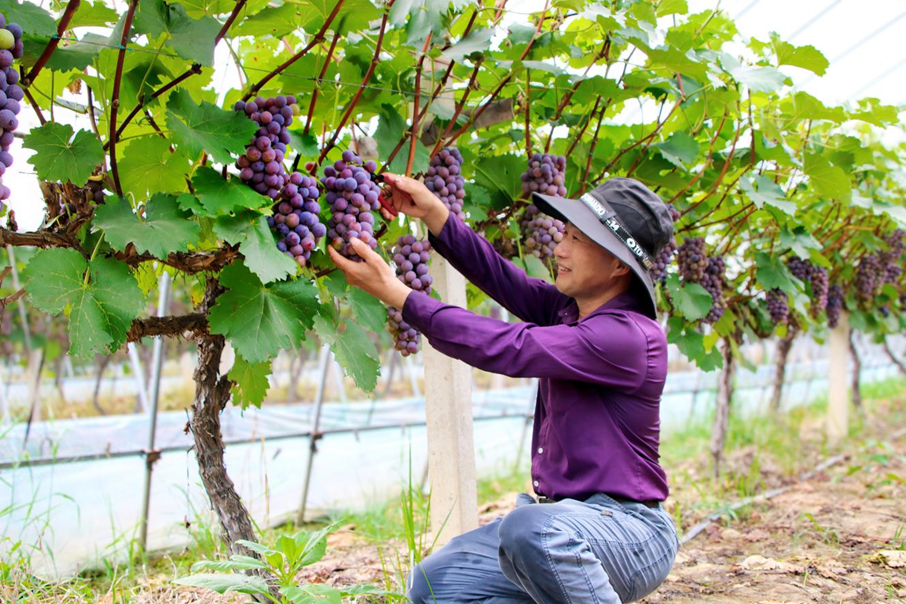 2008年,浙江长兴人王伟国被苏觉社区得天独厚的农业地理条件所吸引,在此种下第一株葡萄苗。创业维艰,从水土不服到技术瓶颈,他频繁往返于长兴与广德之间,虚心向专业人士求教,刻苦钻研技术,终于摸索出一套适应当地的葡萄种植模式。在苏觉社区党委的支持下,他创办了集采摘体验、摊位售卖、现摘现送于一体的家庭农场,其精心培育的阳光玫瑰、奶油葡萄、夏黑葡萄等多个品种,让三十余亩土地焕发出蓬勃生机。