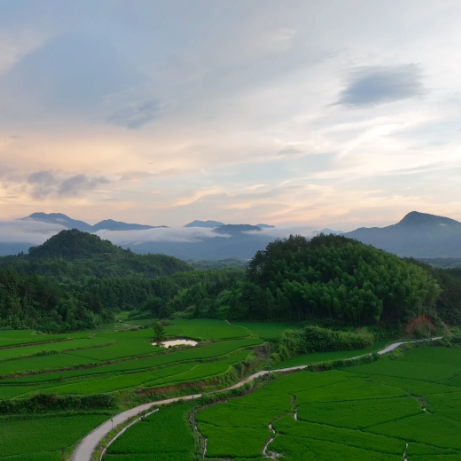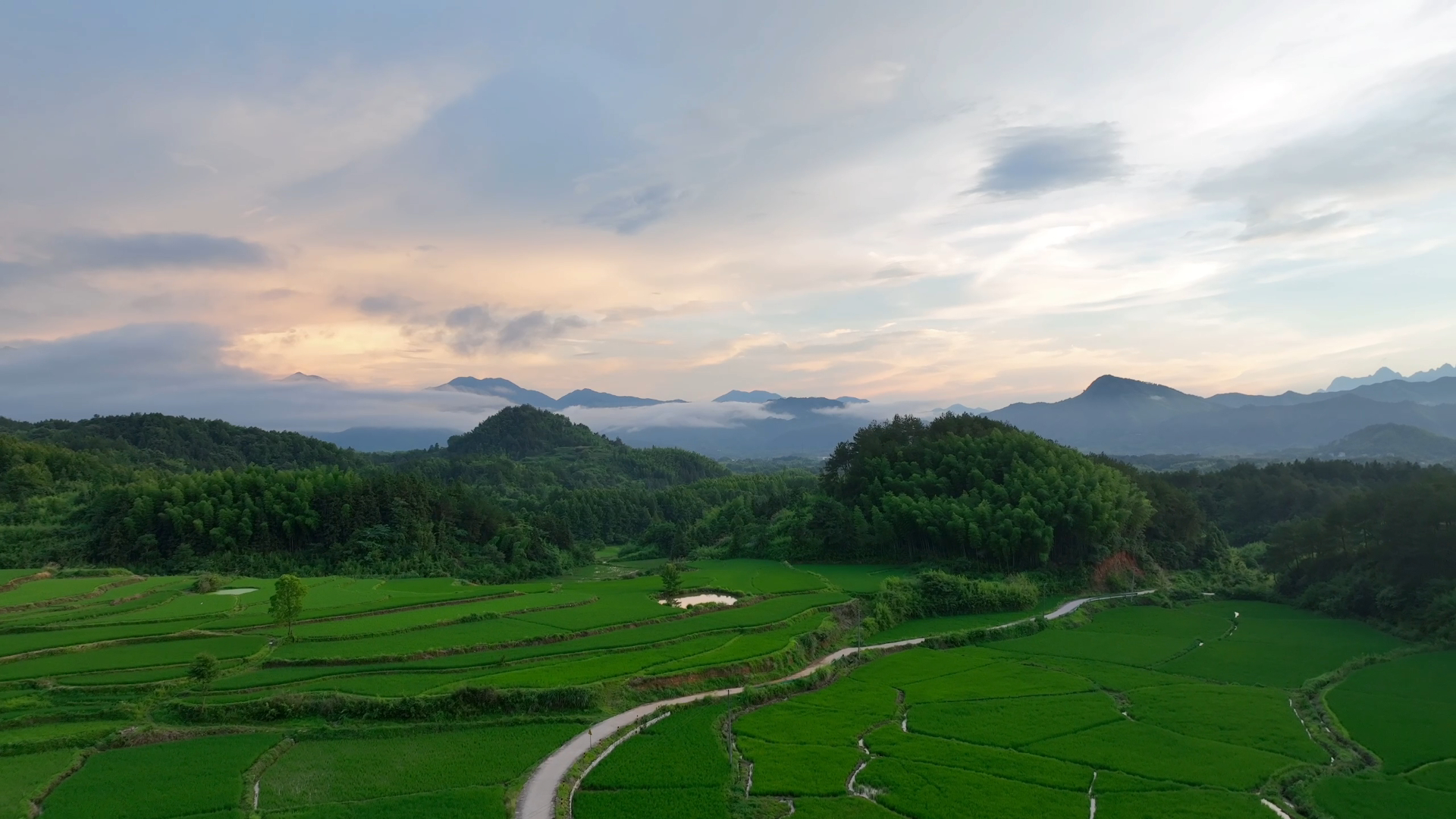 夏日傍晚,安徽省旌德县庙首镇练山村被绚烂的晚霞笼罩。漫天云絮浸染橘粉,错落的青瓦白墙民居披上柔和光晕,勾勒出一幅恬静悠远的乡村画卷。