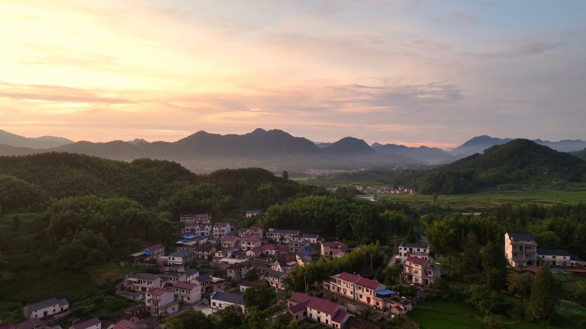 夏日傍晚,安徽省旌德县庙首镇练山村被晚霞笼罩。