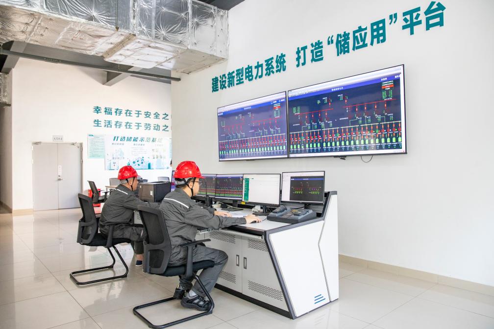 6月16日,国网湖州供电公司工作人员在长州储能电站控制中心查看运行情况。新华社记者徐昱 摄