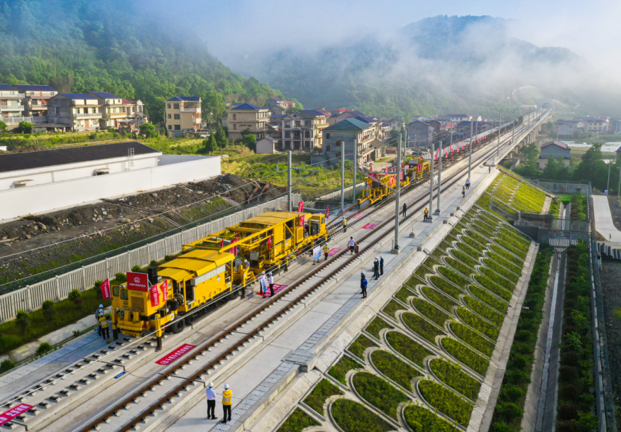 2021年5月8日,在张吉怀铁路施工现场,由中铁四局主持研发的WPZ-500型无砟轨道智能铺轨机组,顺利将一对500米长钢轨铺设到位,标志着国内首套无砟轨道智能铺轨机组成功落地。